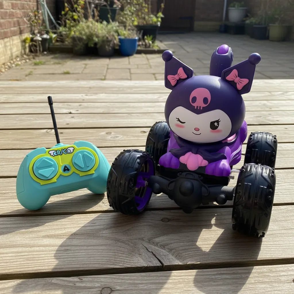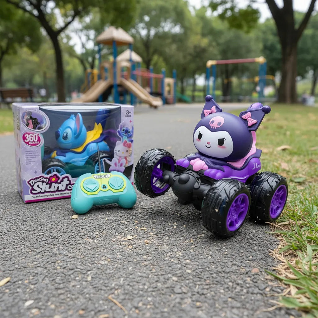 Carro de control remoto divertido con giro 360° inspirado en los hermosos personajes de KUROMI y STICH, con funciones de acrobacias que contienen luces música y sonidos. El carro permite brindar horas de entretenimiento a los niños entre 4 y 8 años.