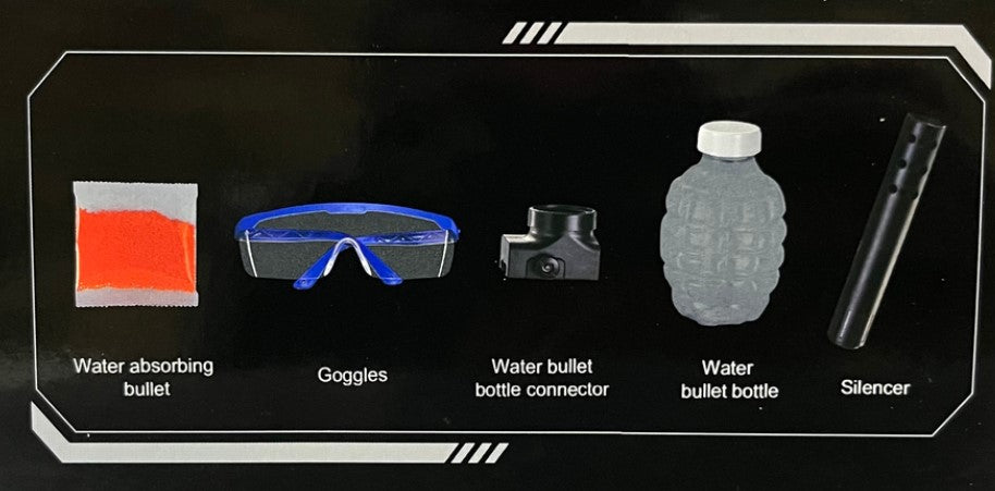 Pistola de hidrogel automática, con silenciador.